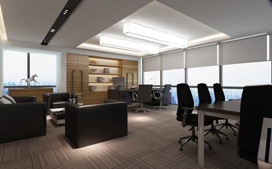 在裝飾辦公室時(shí),我們首先應(yīng)該對(duì)地面進(jìn)行裝修,不平整的地方要用砂漿找平,或者用水泥自流平也可以。地面找平后,您可以選擇鋪貼瓷磚或者木板?,F(xiàn)在也有不少老板在平整的地面上鋪上地毯,效果也是不錯(cuò)的,而且更加的靜音。
