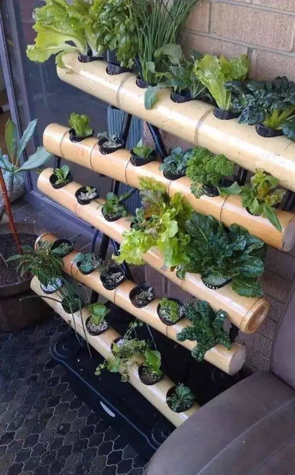 4 利用多層花架省空間 小戶型種菜必學(xué) 用一個(gè)竹筒子每一節(jié)種不同的蔬菜 一次性可以吃到很多種類的蔬菜啊,哈哈