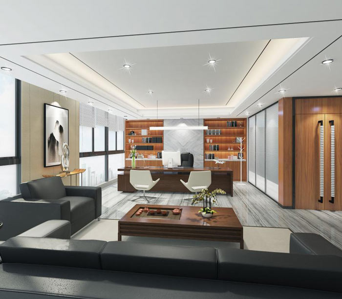 董事長辦公室設計:董事長是企業(yè)的核心,此處也是企業(yè)的核心所在,辦公、接待、洽談、交流、展示組成一個完成的董事長辦公室。