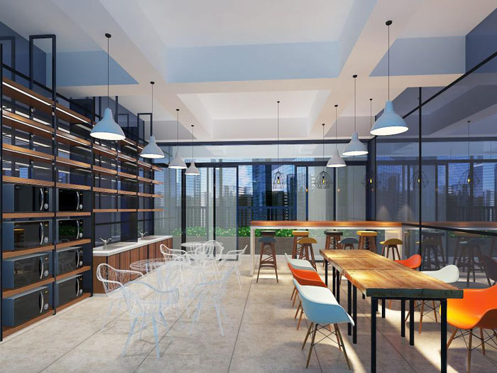 辦公室茶水間設計:員工在這里休息、娛樂,這里采用的是工業(yè)風的設計,目的就是希望員工在這里沒有任何壓力,讓員工在這里得到暫時的安寧。