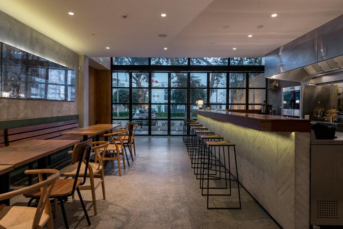 本次為特色餐廳裝修設(shè)計項目,餐廳設(shè)計面積390平方,廚房采用開放式設(shè)計,目的是讓餐廳成為整個烹飪過程的參與者,主餐廳分為兩層。