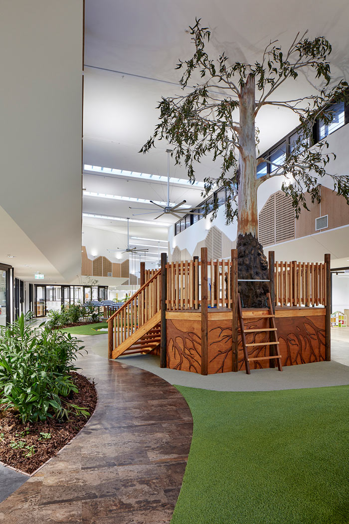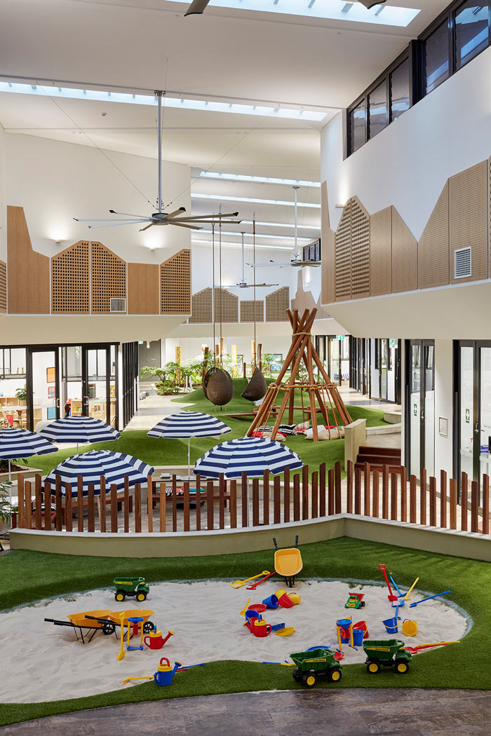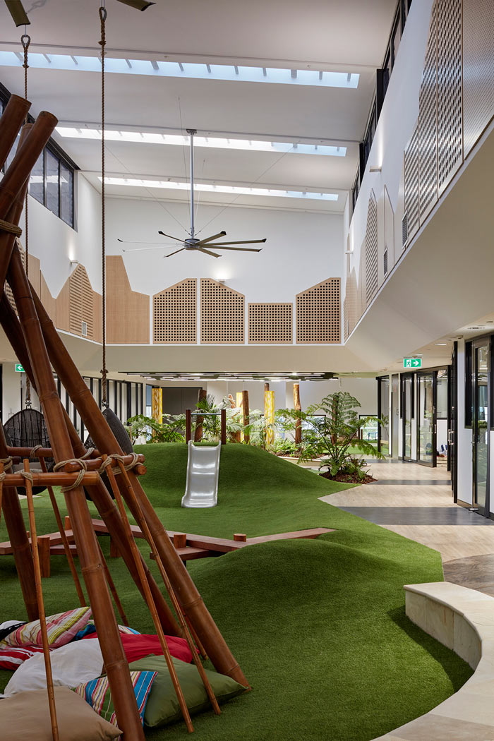 【早教中心裝修廳設(shè)計(jì)】自然區(qū):這里還原了很多自然屬性,孩子對于世界的認(rèn)識是初步的,設(shè)計(jì)師希望讓孩子在這里逐步去了解自然,讓孩子通過自己不斷的發(fā)現(xiàn),激發(fā)孩子的想象力。