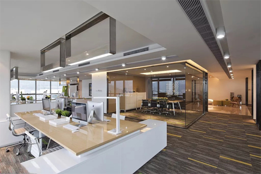 在辦公室裝修中面積越小,就越考驗(yàn)設(shè)計(jì)師的功力。主要是因?yàn)槊娣e較小,但又需要兼顧基本的功能性需求??梢岳瞄_(kāi)放式、增加落地窗、靈活運(yùn)用隔斷、改變層高等設(shè)計(jì)方式,這樣即實(shí)現(xiàn)了空間的功能分區(qū),又保持了空間的完整性。同時(shí)還應(yīng)注重對(duì)辦公環(huán)境的研究,將自然環(huán)境引入室內(nèi),給辦公空間帶來(lái)一派生機(jī)。